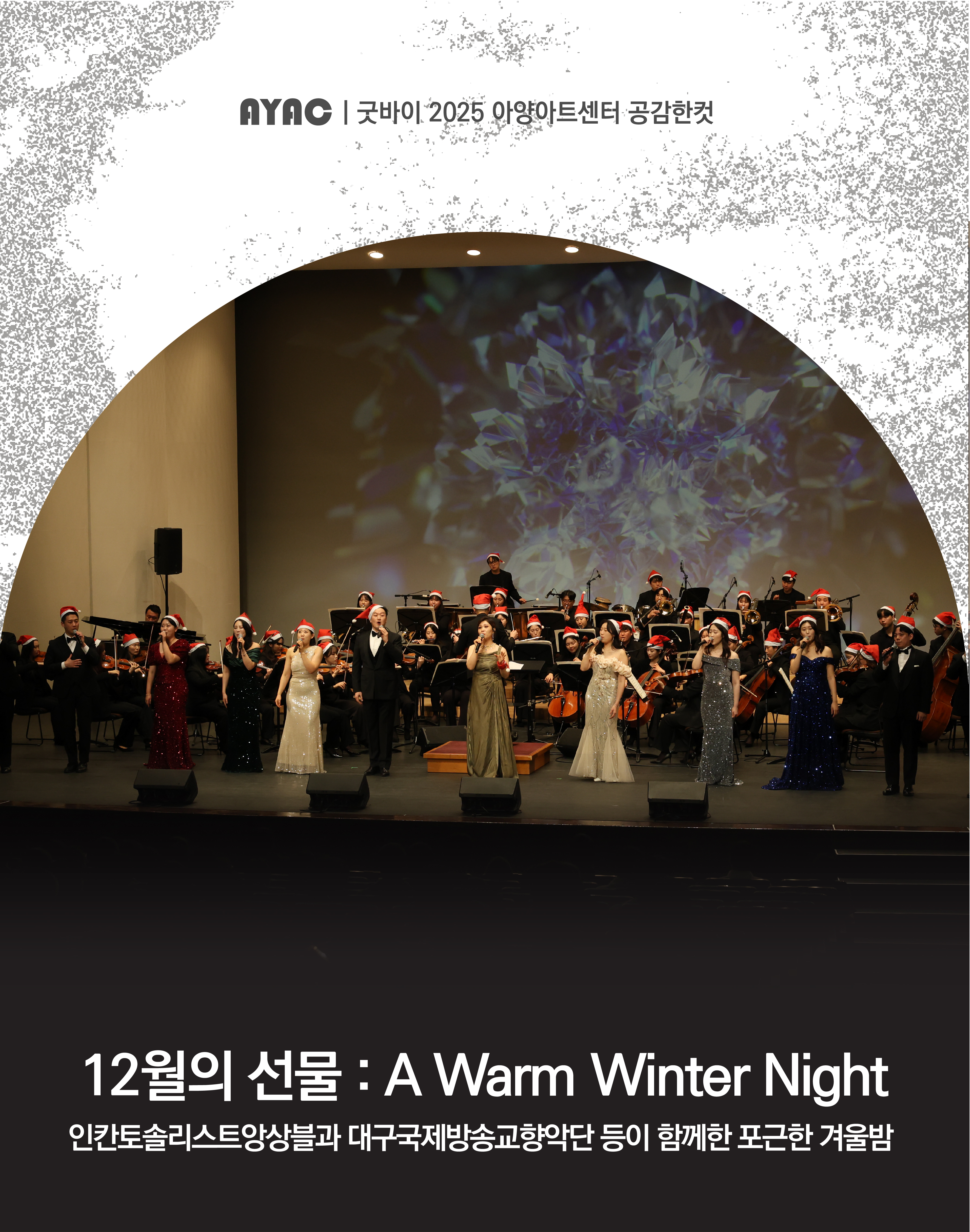 갤러리 갤러리 12월의 선물 : A Warm Winter Night 2026.01.19 조회수30 첨부파일이 없습니다 prev 2025 브런치콘서트-물리학자 김범준 LIST next 대니 구 윈터콘서트 <HOME>